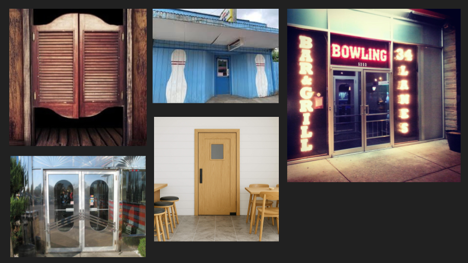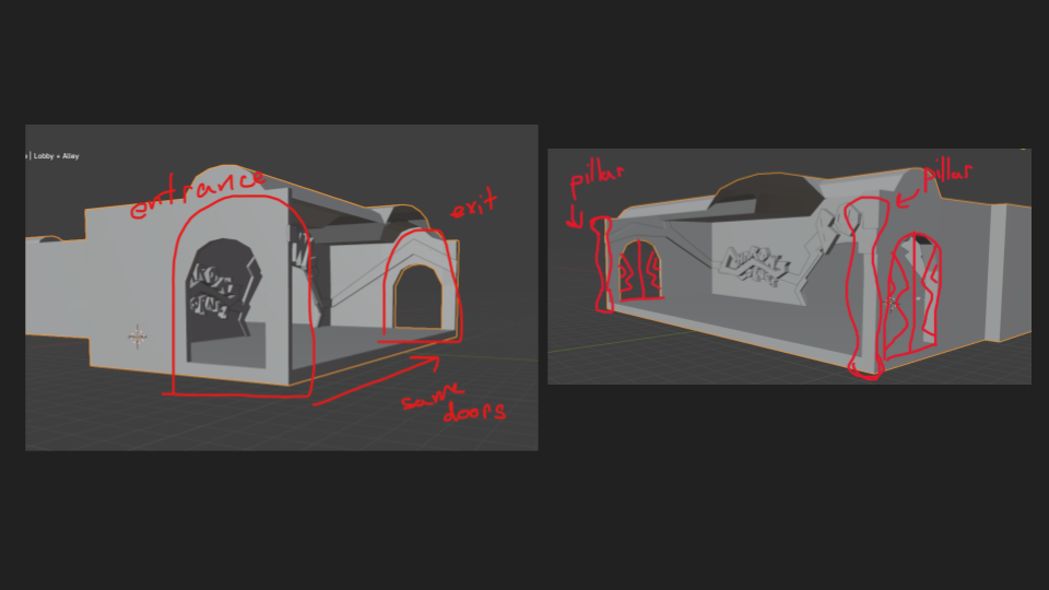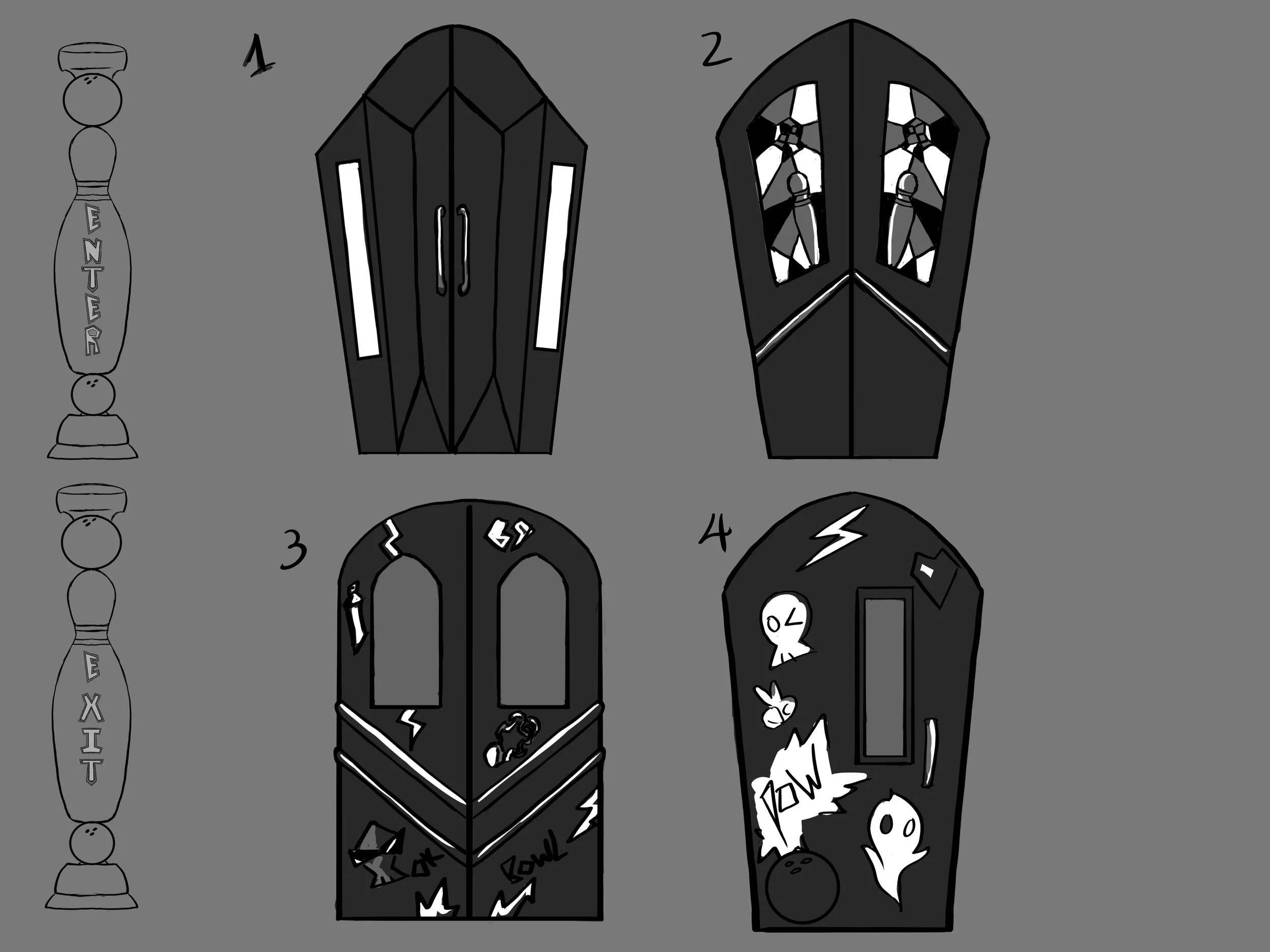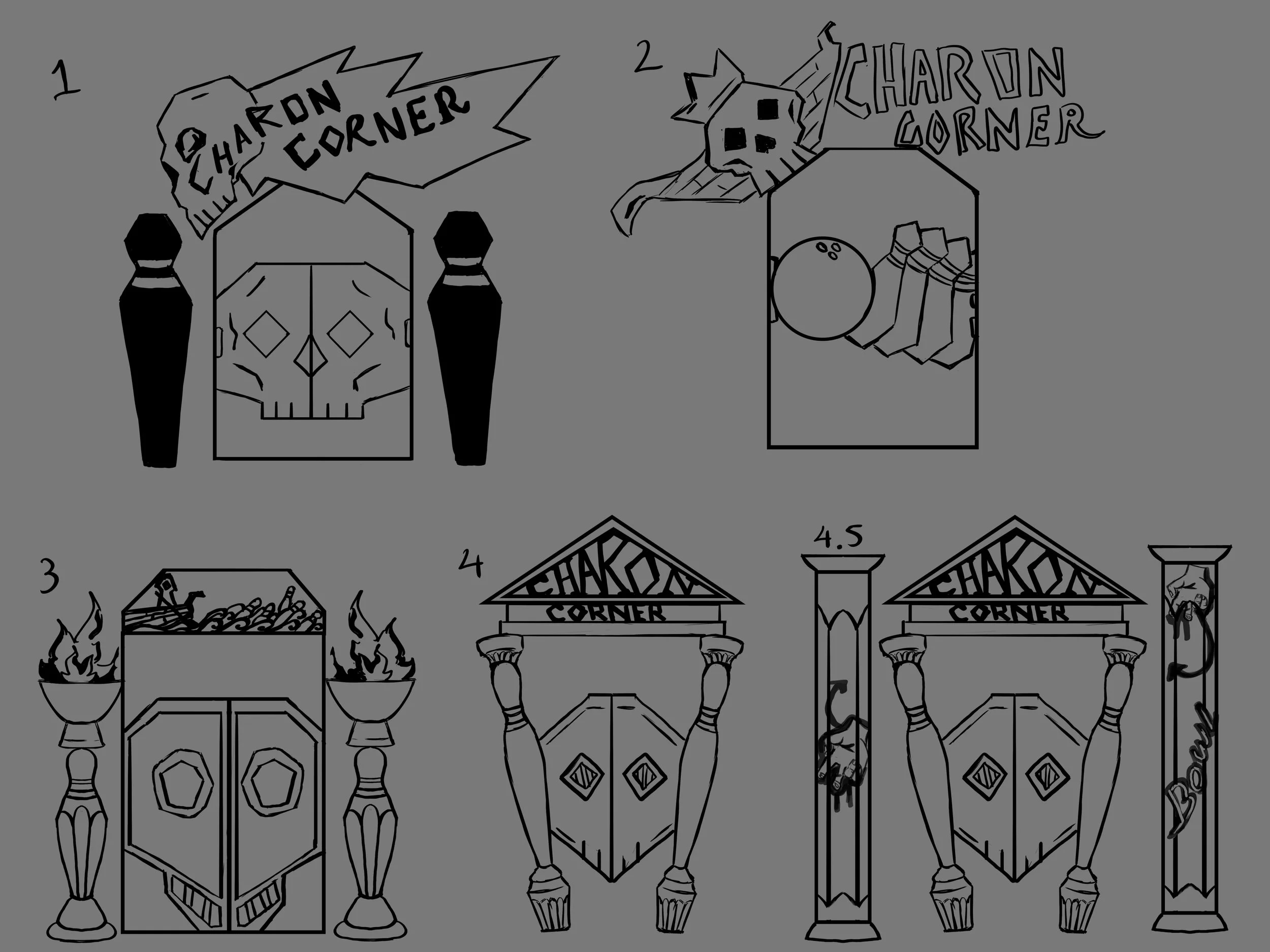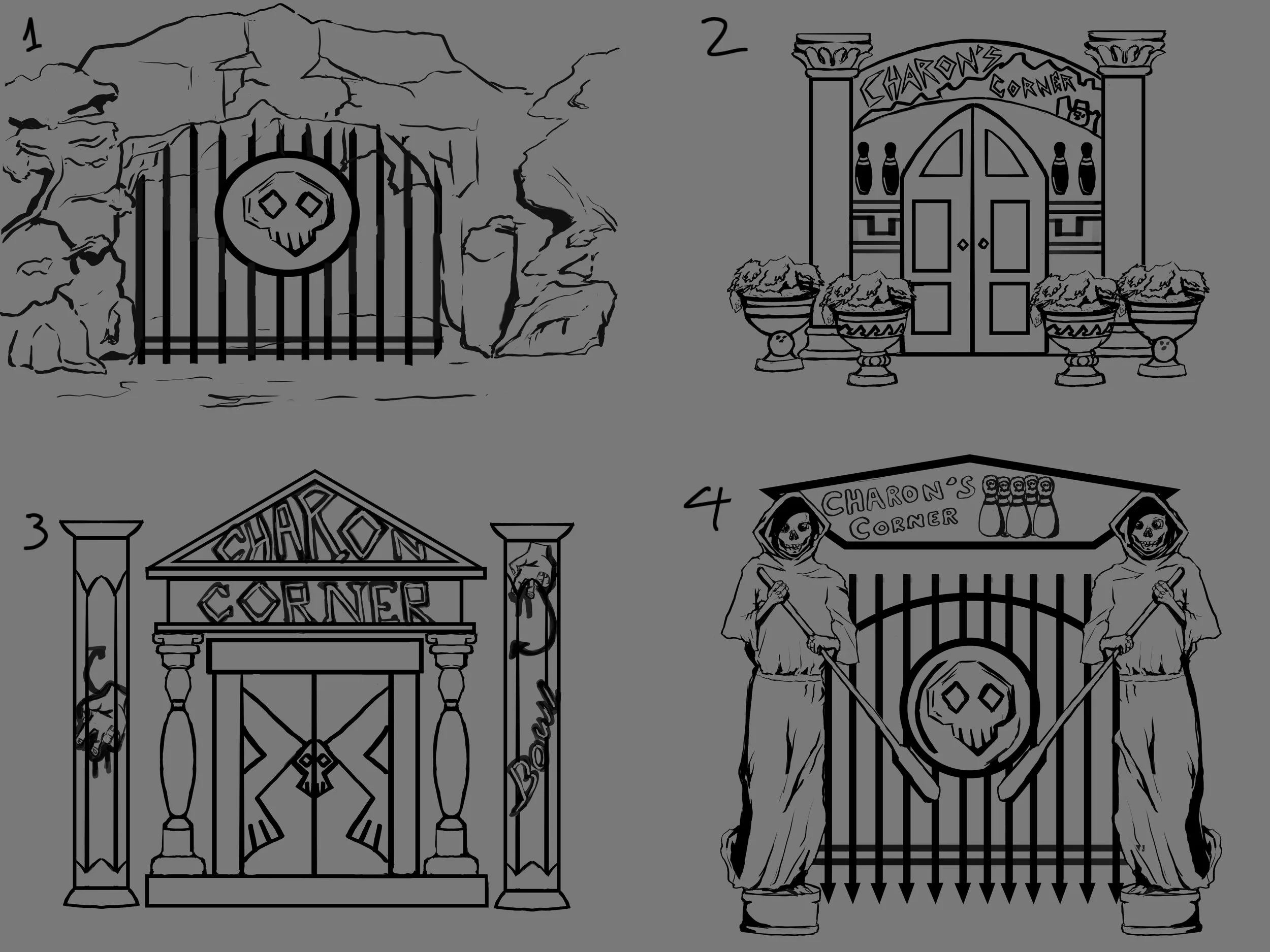 Early concept design of different door variants to use for the Bowling Alley entrance to Charon Corner.